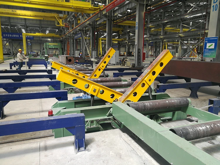 В каждом наборе предусмотрены два ПК подвижных гидравлических пучков 180 °, в основном используемые для переворачивания заготовков после сварки с одной стороны. При работе поднимите заготовку от роликового стола или стойки заготовки, и редуктор ведет два переворачивающихся кронштейна, чтобы синхронно перемещать заготовку в сторону на боковой столе или стойки заготовки. Затем два гидравлических цилиндра приводят к синхронному вращению двух L-образных рук. После того, как заготовка переворачивается, она перемещается в середину роликового стола или стойки заготовки, а затем заготовка транспортируется в следующий процесс или сварена.